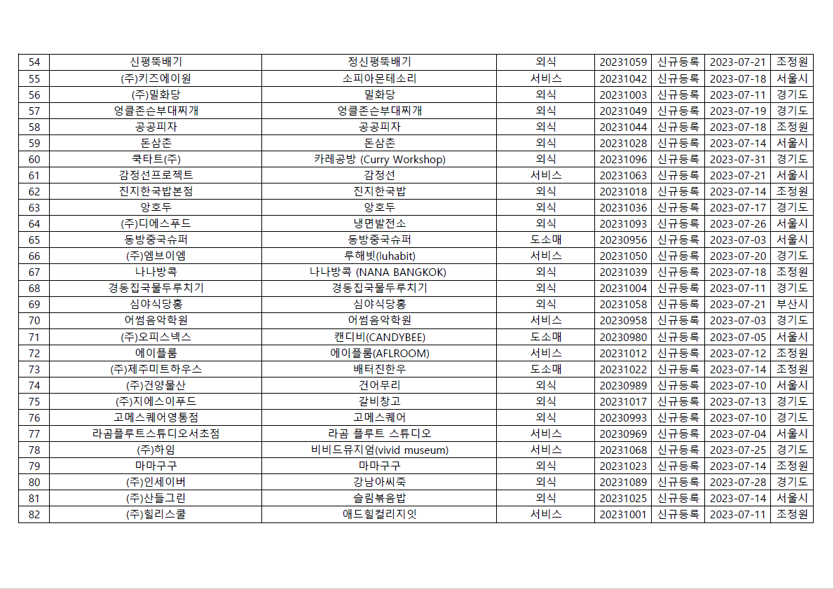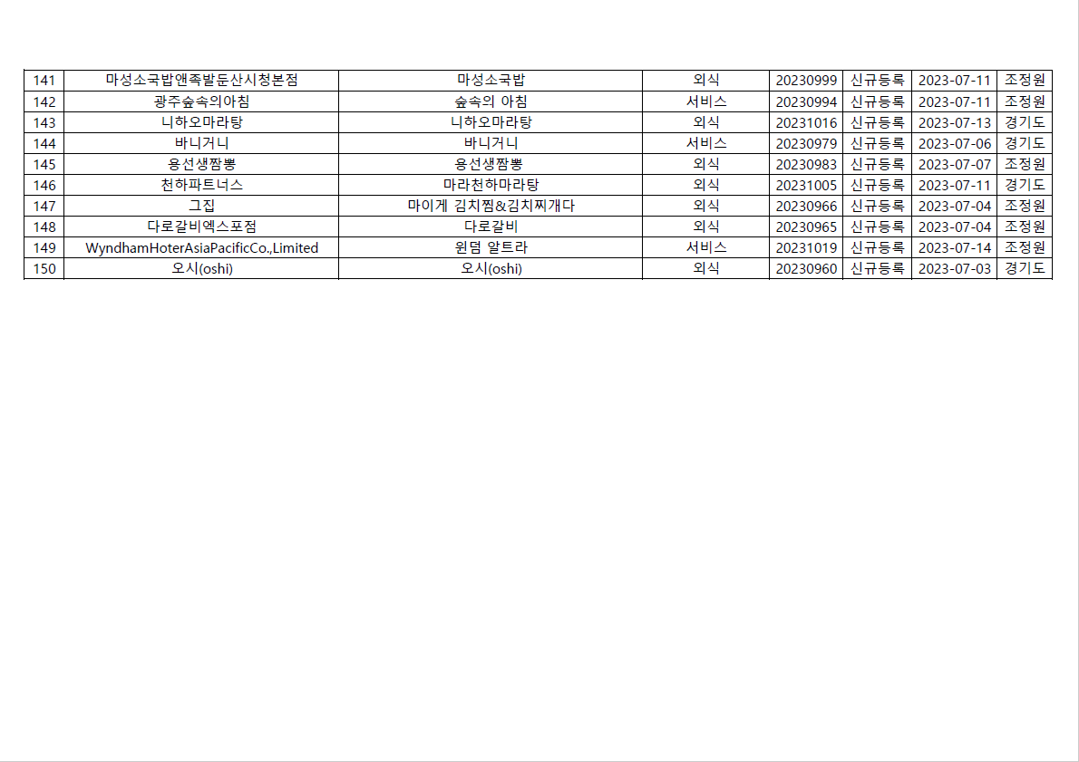 2023년 7월에는 신규브랜드가 150곳이 있었네요.