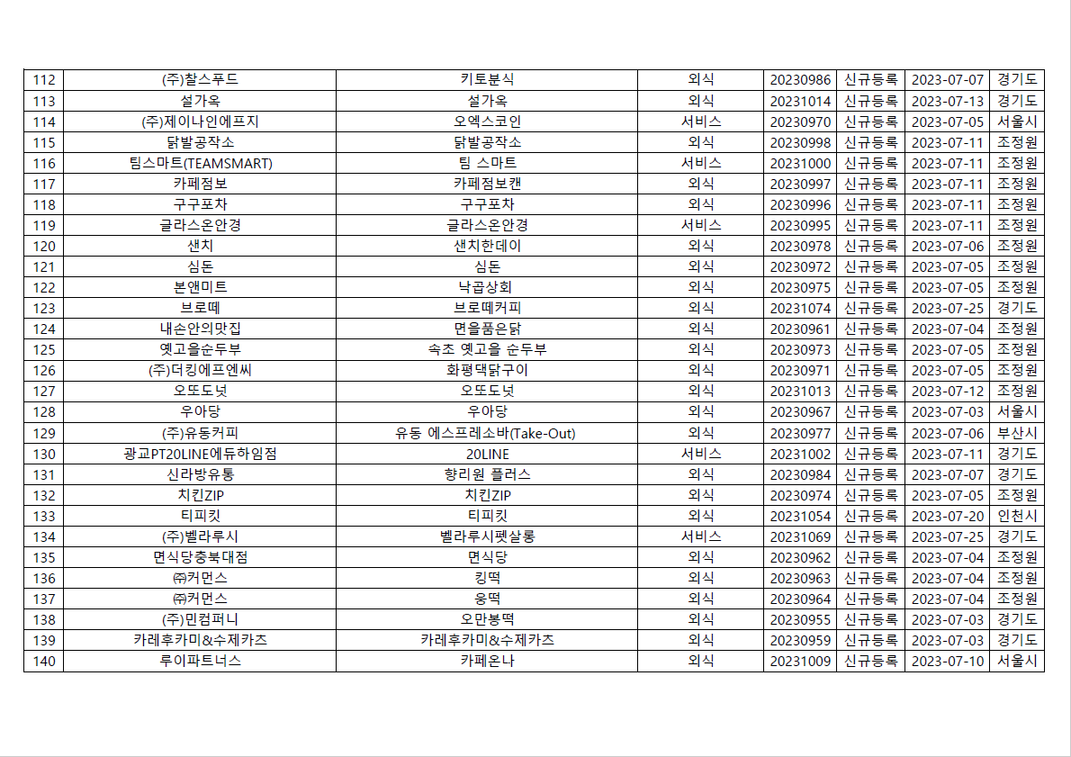 정보공개서 프랜차이즈 2023년 7월 신규등록 및 등록취소 발표